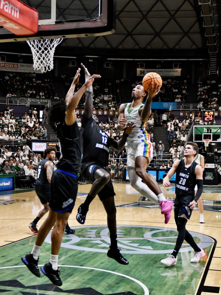 After an emotional, thrilling weekend highlighted by the official retirement of Anthony “AC” Carter’s No. 23 jersey and then an exhilarating 78-75 overtime victory over visiting UC Santa Barbara, the University of Hawai’i men’s basketball team is back on the road Thursday at UC Davis.